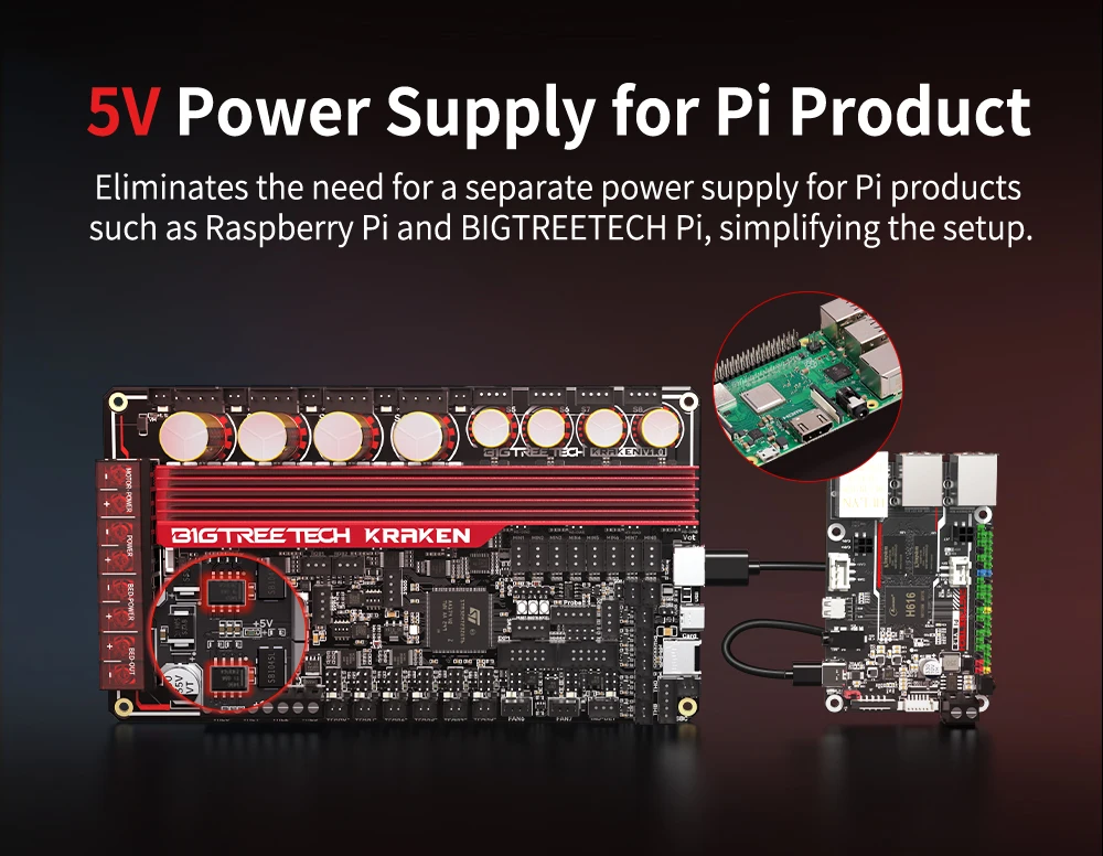 Elimina la necesidad de una fuente de alimentación separada para productos Pi como Raspberry Pi y BIGTREETECH Pi, simplificando la configuración.