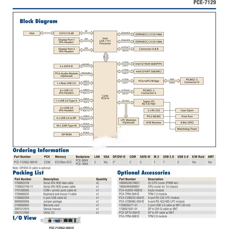 Placa base industrial Placa de computadora industrial Chip LGA1151/C236 para Advantech de PCE-7129G2-00A1E