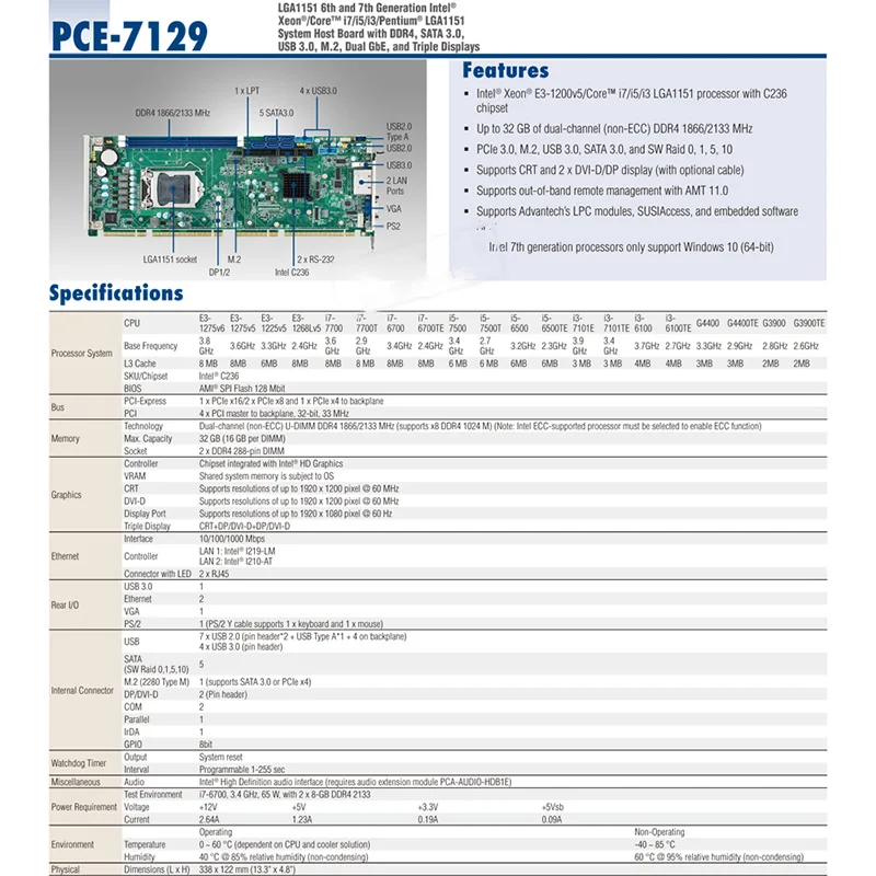 Placa base industrial Placa de computadora industrial Chip LGA1151/C236 para Advantech de PCE-7129G2-00A1E