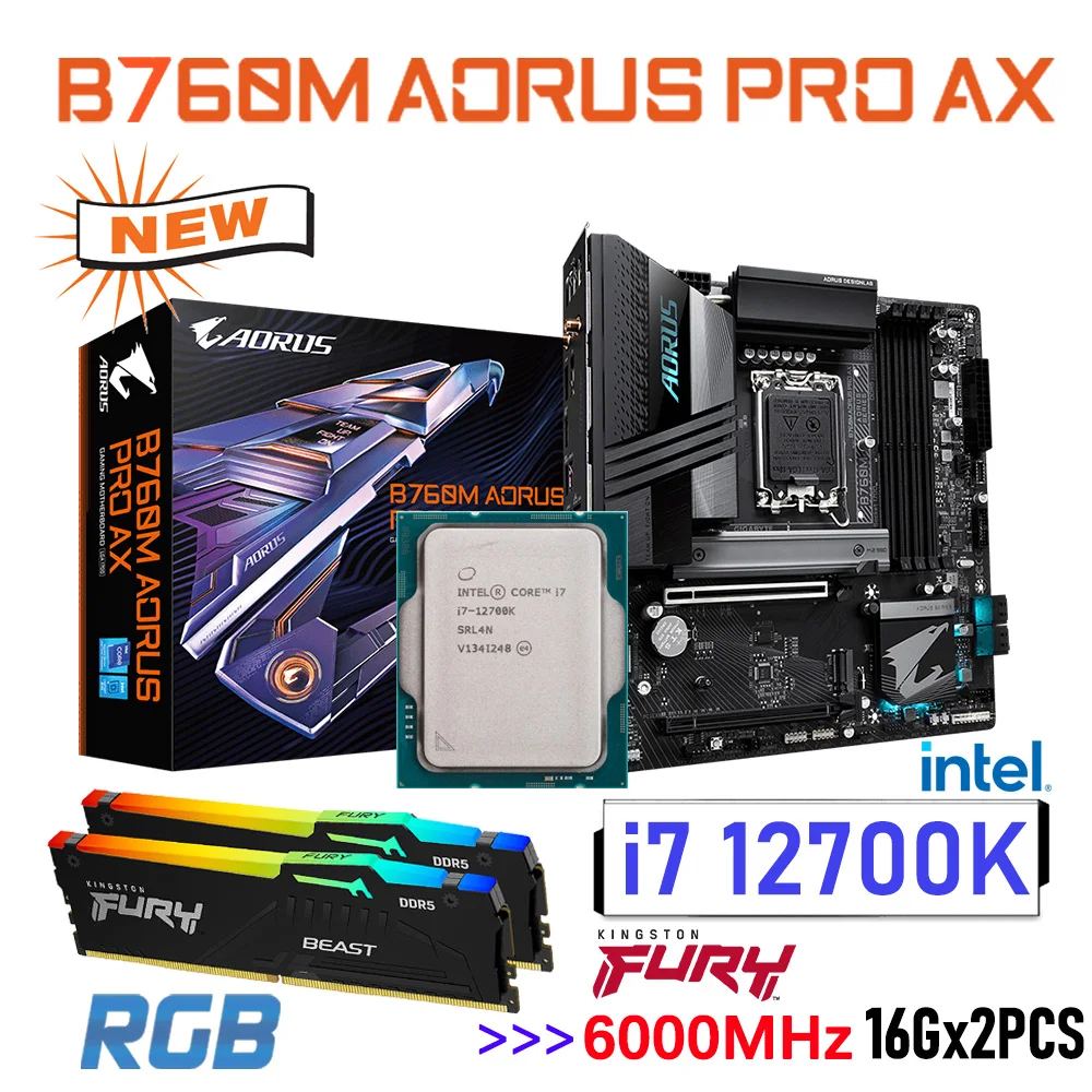 Comprar Placa base Intel B760 LGA1700 CPU i7 12700K Kit de procesador Gigabyte B760M Aorus PRO AX DDR5 memoria 6000MHz 32G RAM i7 12700K CPU