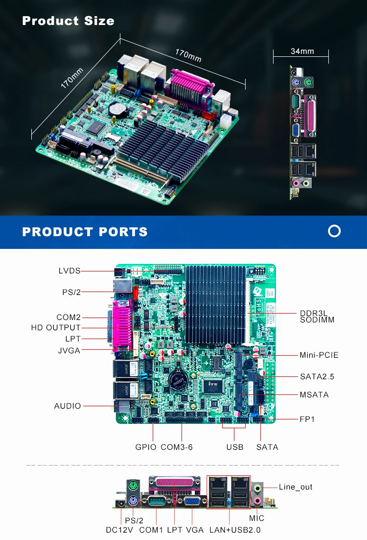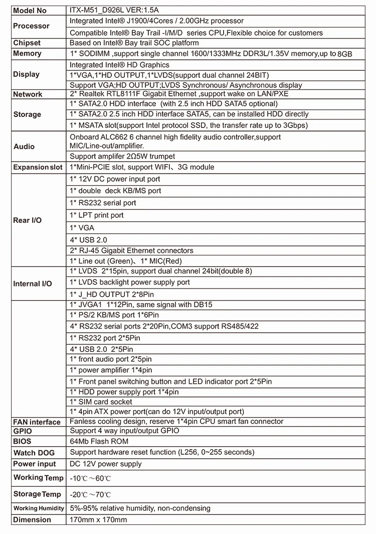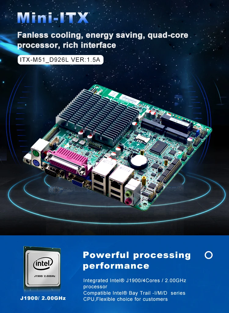 Comprar Placa base Intel J1900 Bay trail Mini ITX con doble Gigabit Ethernet / 6 * COM/ 8 * USB PS2 LPT