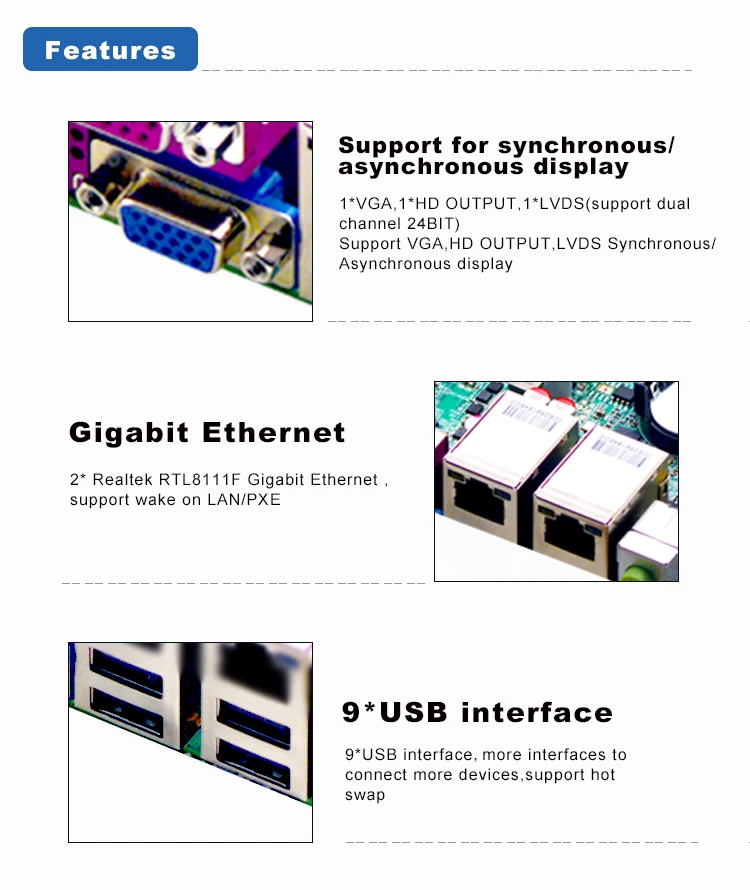 Compatible con 1 * VGA,1 * LVDS (compatible con doble canal de 24 bits)