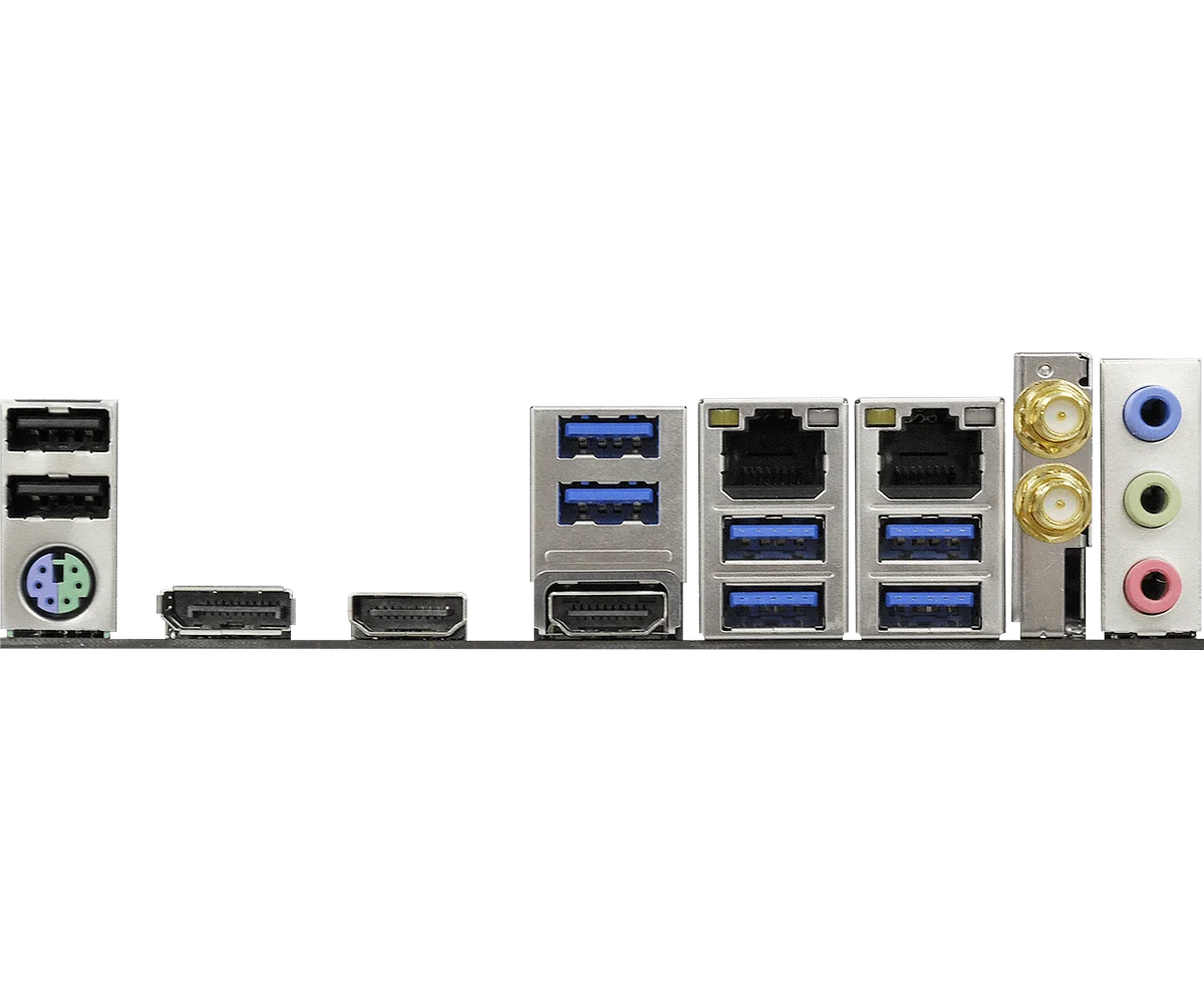 Otras interfaces: 2 × interfaz de red RJ45, 3 × interfaz de audio, 1 × interfaz DE VENTILADOR DE CPU, 1 × interfaz de ventilador de chasis, 1 × interfaz de ventilador de bomba de agua opcional/chasis, 1 × interfaz de audio del panel frontal, 2 × puerto de antena, 1 × Interfaz universal de teclado y ratón PS /2