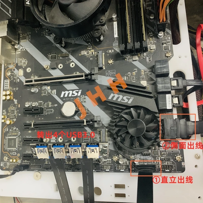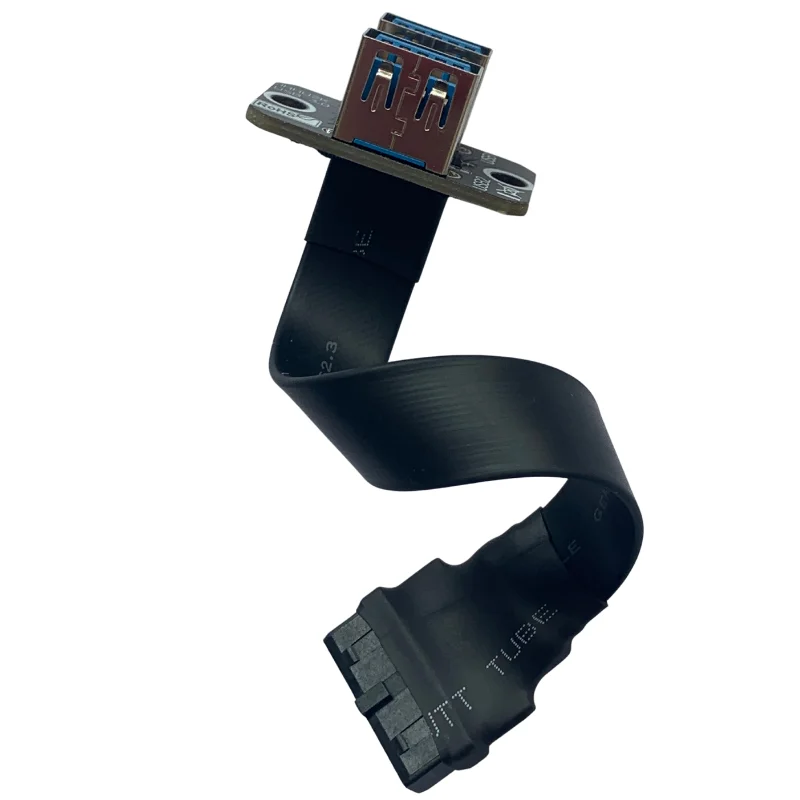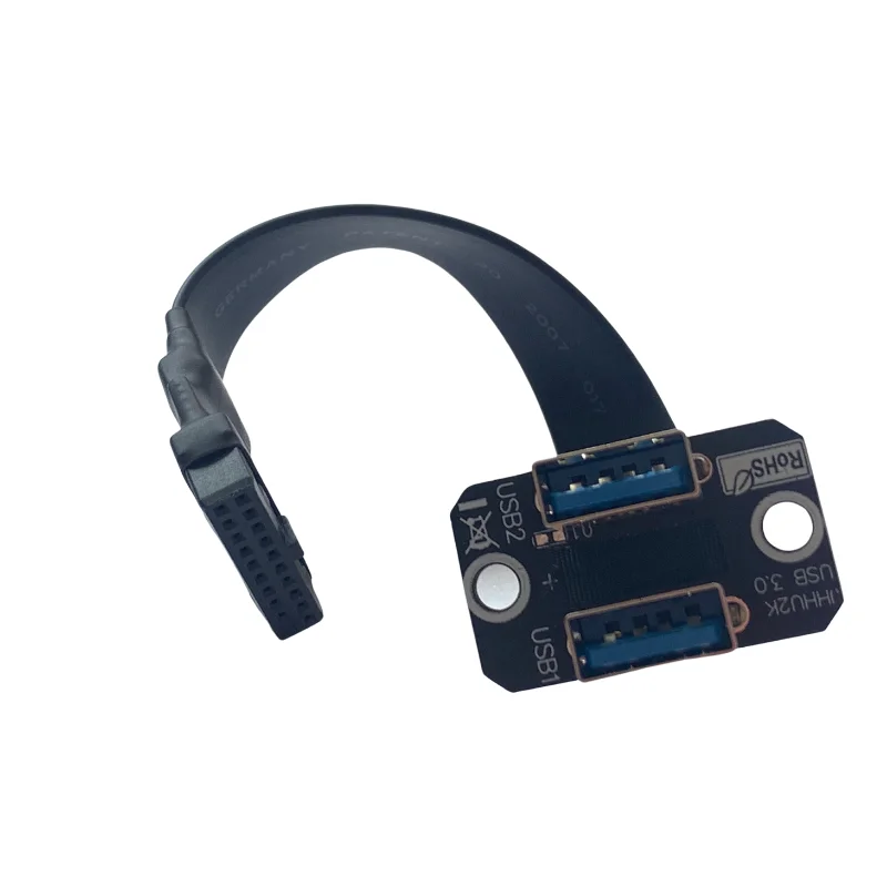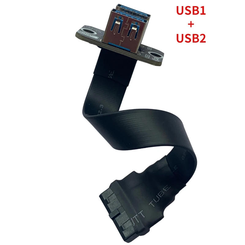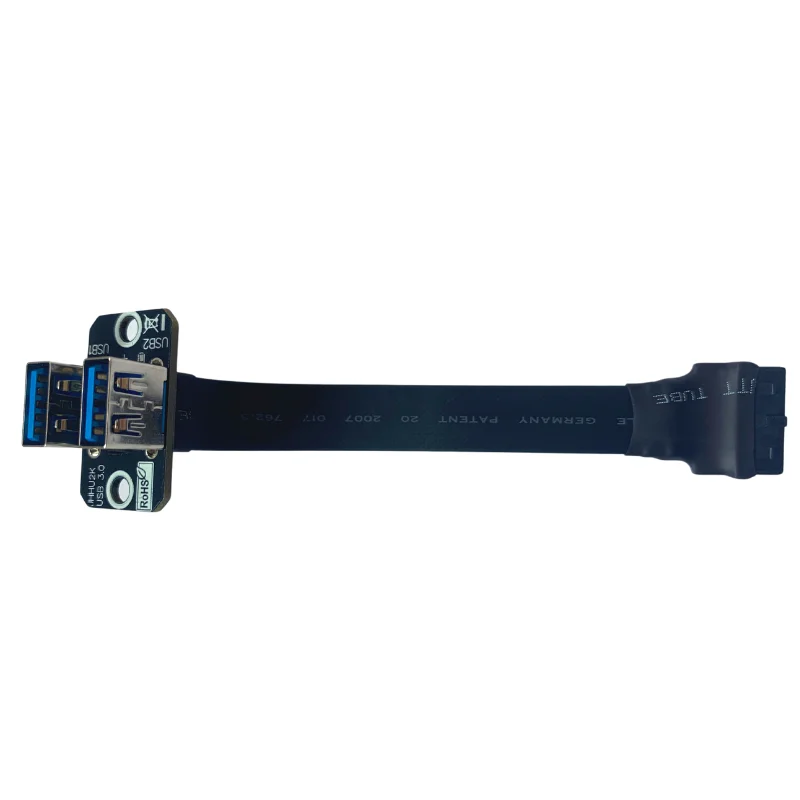 Placa base interna de 19/20 pines a 2 puertos USB 3,0 USB-A, Cable plano hembra, Panel frontal Dual USB 3,0x2, adaptador USB blindado de velocidad completa