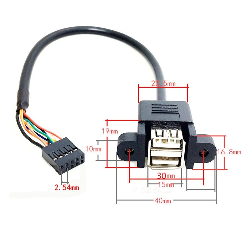Comprar Placa base interna de 30cm y 100cm, 9 pines, 9P A doble puerto, USB 2,0 A, Panel hembra para instalar Cable DuPont de datos
