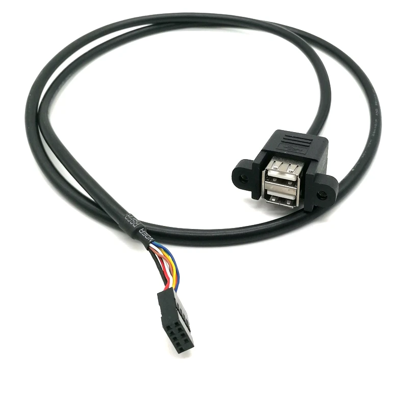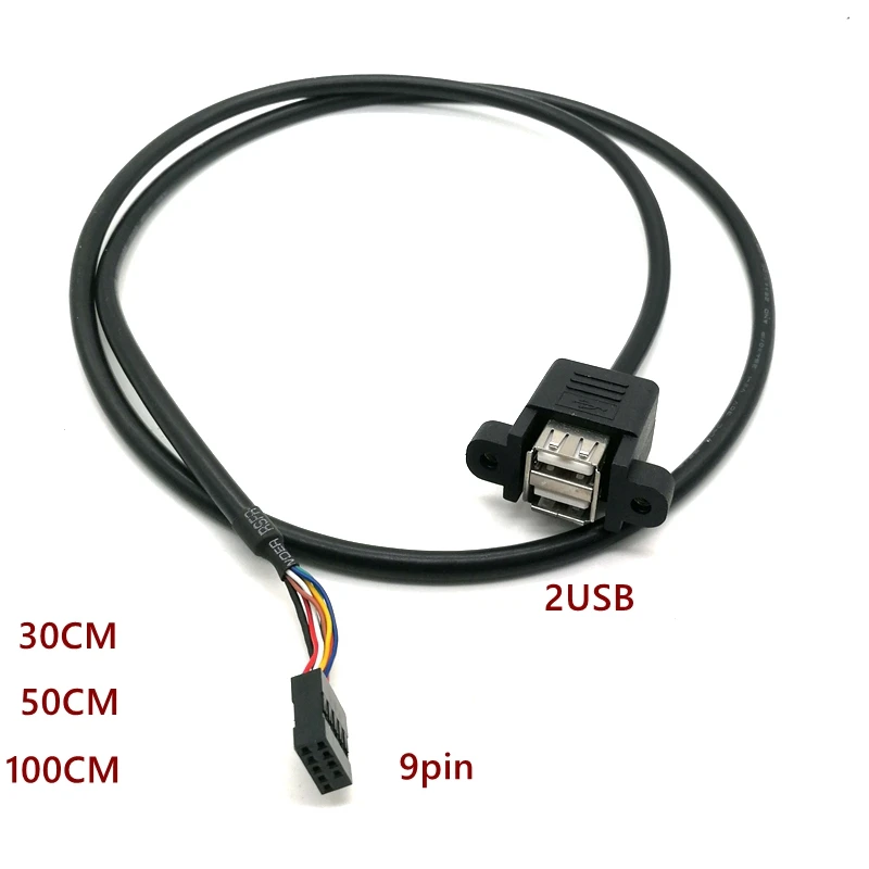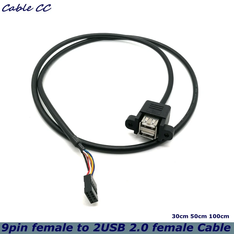 Comprar Placa base interna de 9 pines, paso de 2,54mm A puerto Dual USB 2,0 A, Cable de montaje en Panel de bloqueo de tornillo hembra, 0,3 M, 0,5 M, 1M