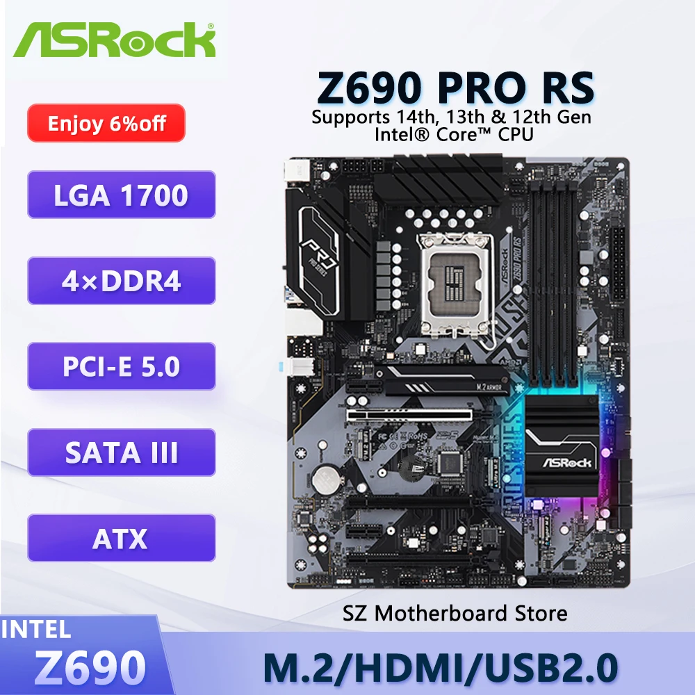 Comprar Placa base para juegos ASROCK Z690 PRO RS Z690 LGA 1700 para i5-12600K i7-12700K i9-12900K CPU DDR4 M.2 SATA III ATX