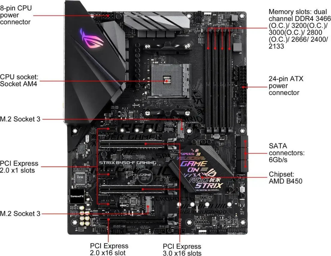 Placa base ASUS ROG STRIX B450-F para JUEGOS Compatible con Ryzen 5 3600X 5600G R7 5700X3D 5800X3D CPU 4xDDR4 HDMI M.2 ATX AM4 Placa base
