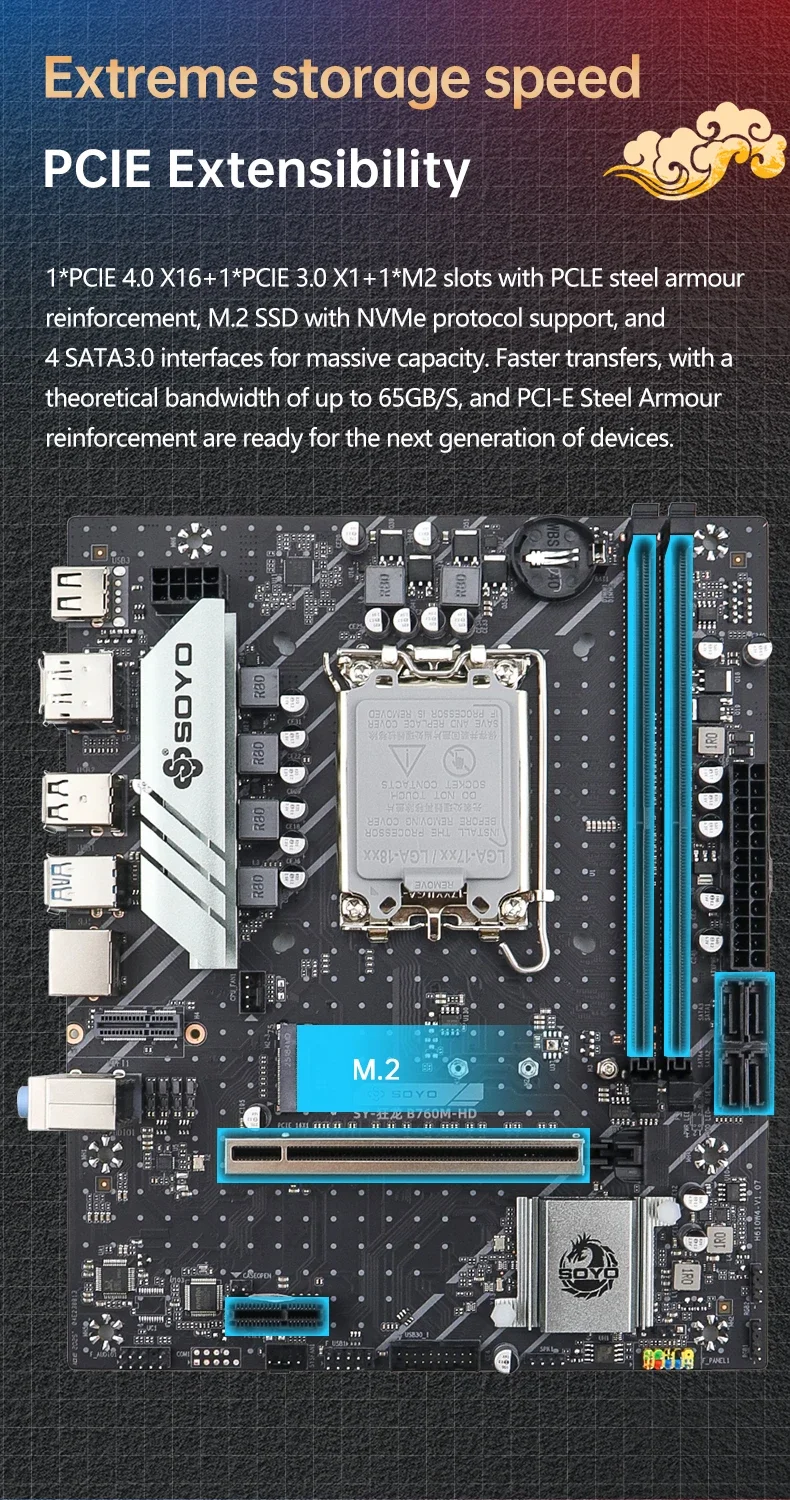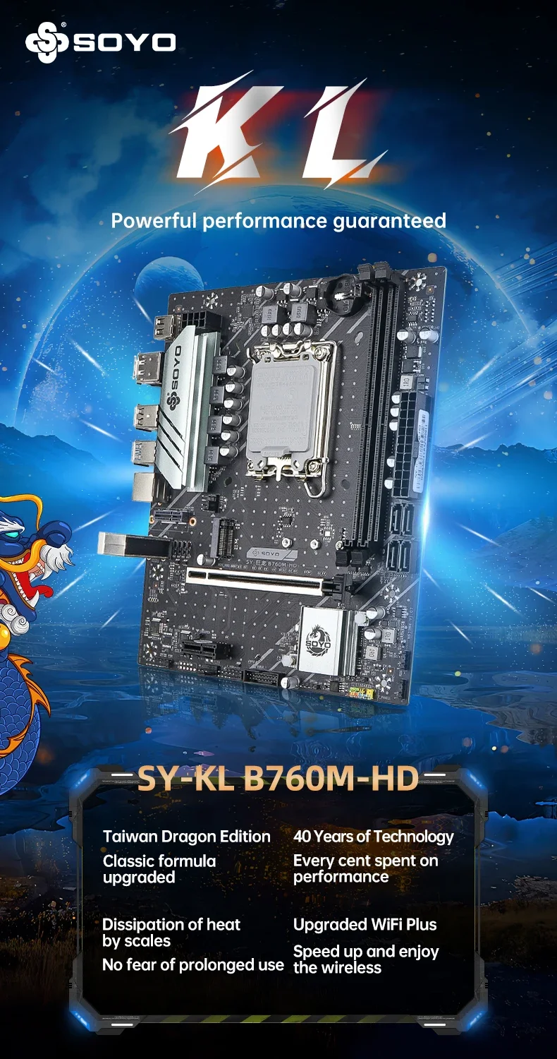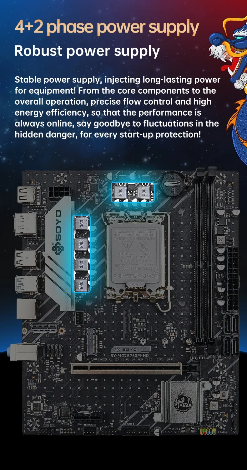 Placa base SOYO Dragon B760M HD × 1 (probado manualmente antes del embalaje)