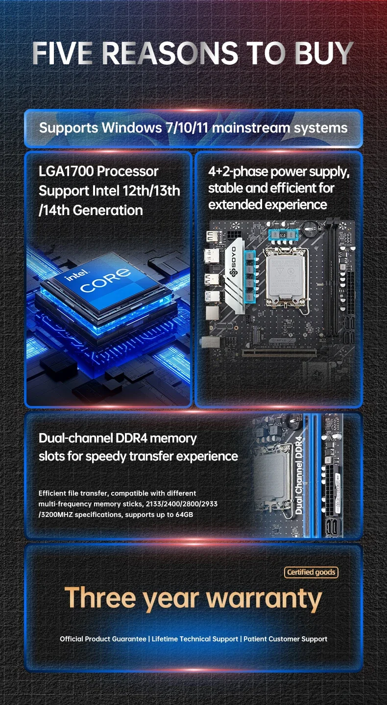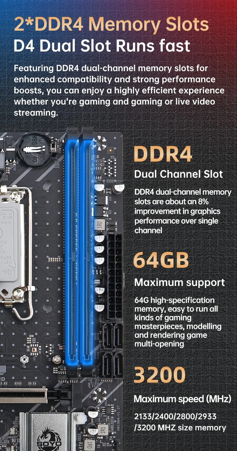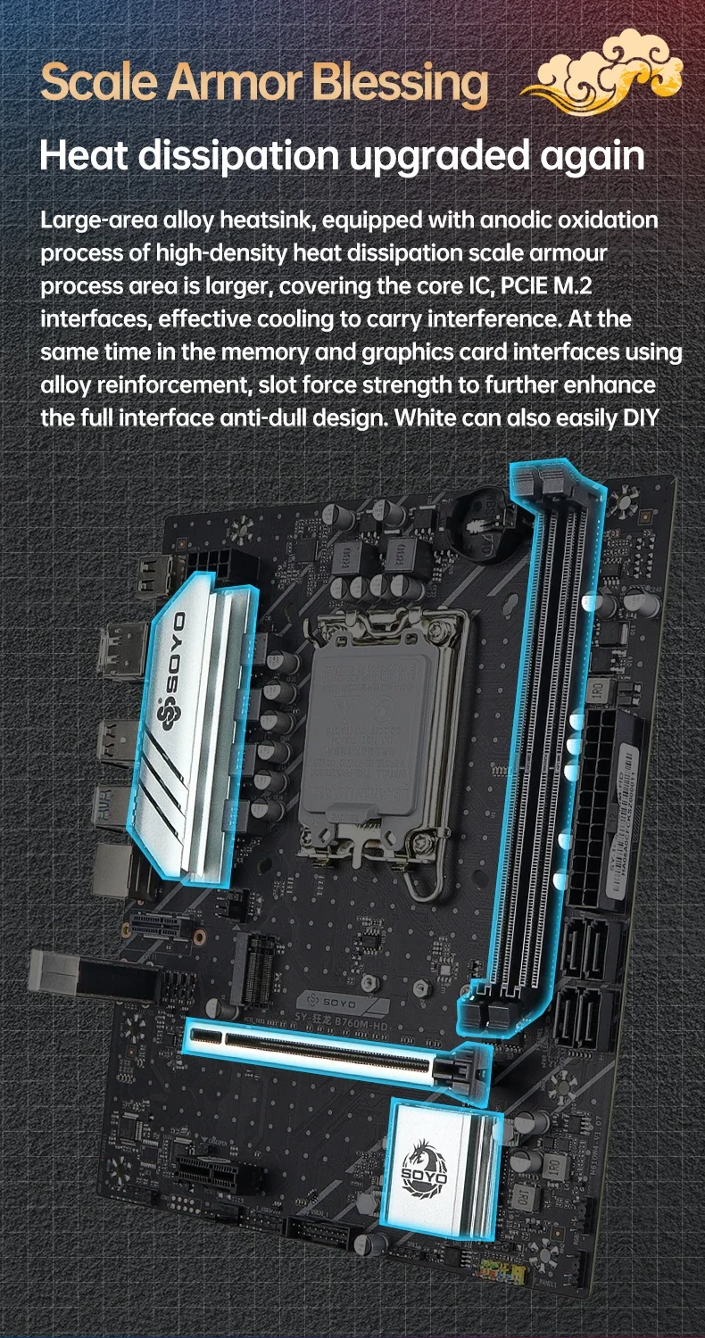Placa base SOYO Dragon B760M HD × 1 (probado manualmente antes del embalaje)