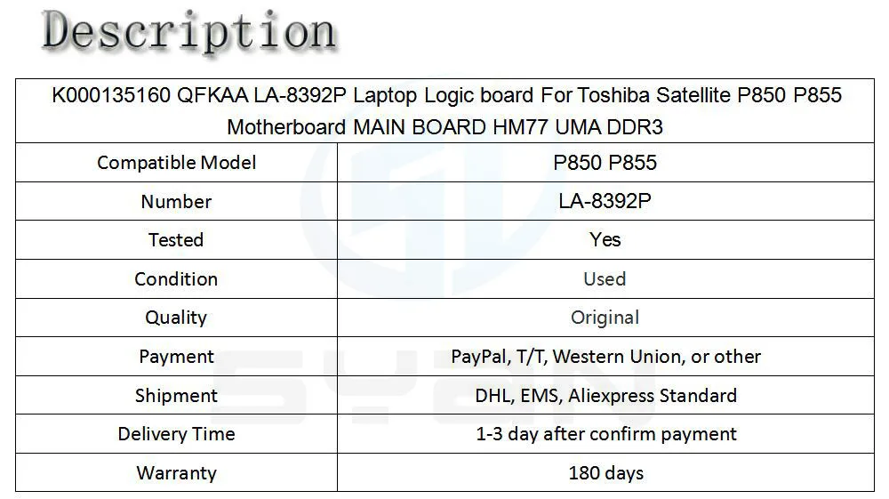 Comprar Placa base K000135160 QFKAA LA-8392P para ordenador portátil, placa lógica para Toshiba Satellite P850 P855, placa base principal HM77 UMA DDR3