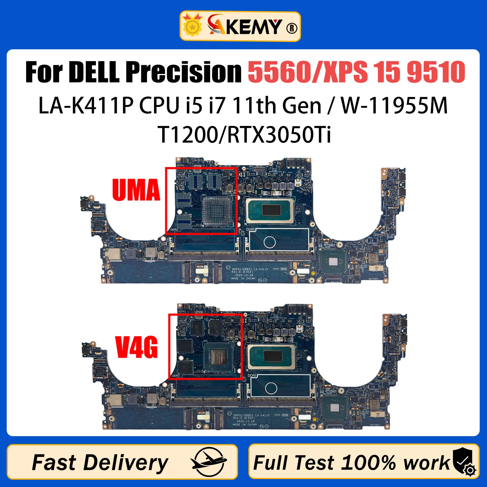 Comprar Placa base LA-K411P para Dell PRECISION 5560, placa base para ordenador portátil, CN 01V4T3 0NG7N9 con i5 i7, i9-11th Gen, CPU T1200/RTX3050Ti