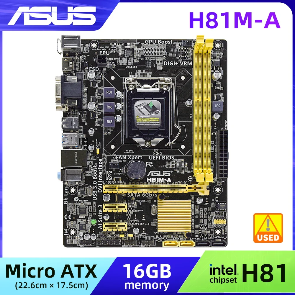 Comprar Placa base LGA 1150 ASUS H81M-A LGA 1150 DDR3 16GB PCI-E 2,0 USB3.0 DVI Micro ATX para Celeron G1850 cpu Velocidad de memoria 1600 MHz