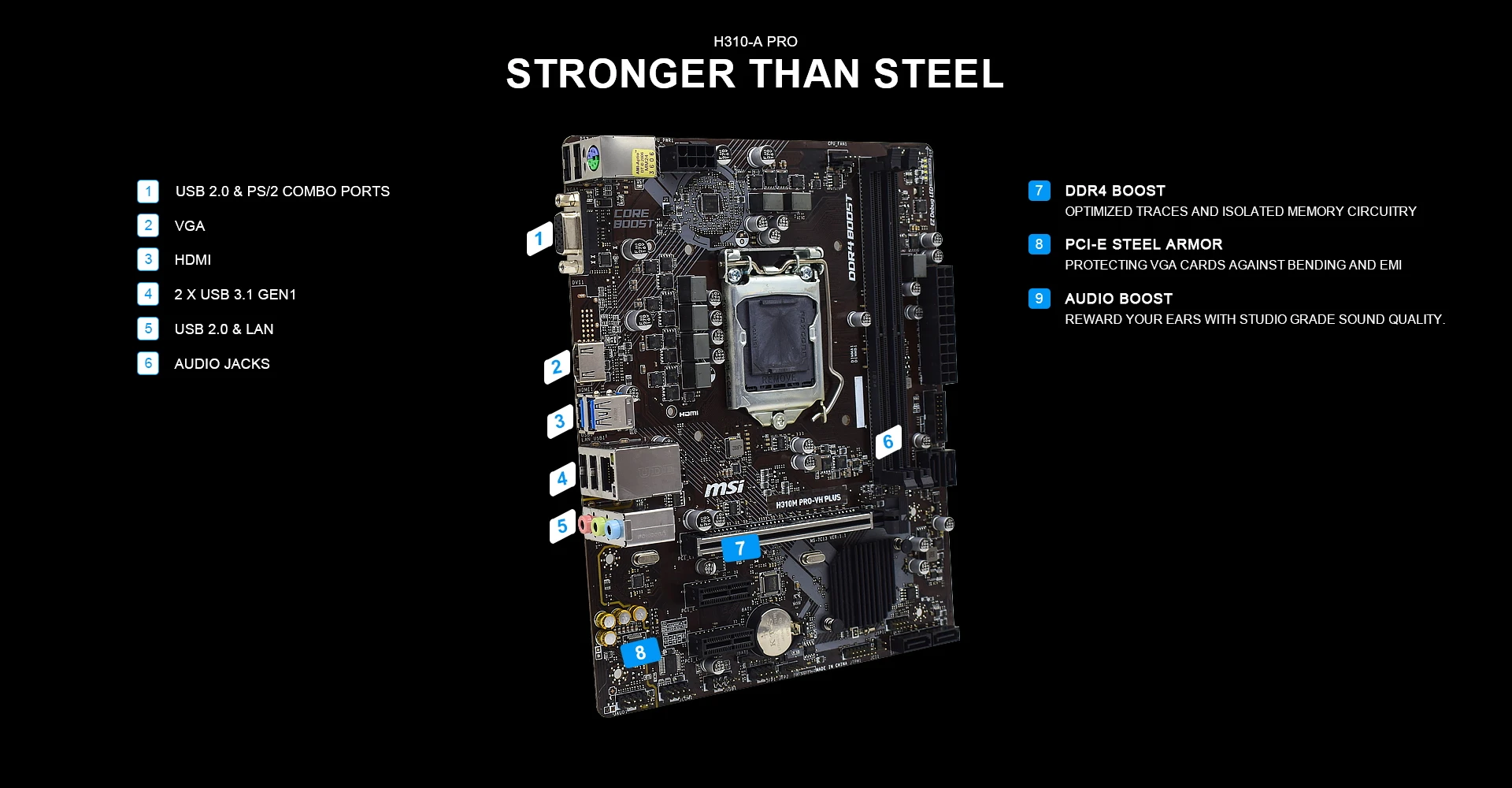 Comprar Placa base LGA 1151 MSI H310M PRO-VH PLUS LGA 1151Intel H310 DDR4 32GB VGA PCI-E 3,0 SATA III HDMI Micro ATX para cpu G4900