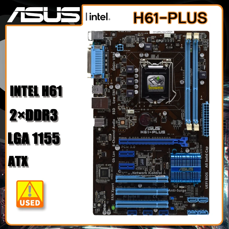Comprar Placa base LGA 1155 ASUS H61-PLUS, LGA 1155, DDR3, Intel H61, 16GB, SATA II, PCI-E 3,0, USB2.0, ATX, para Core, i3-2120, CPU