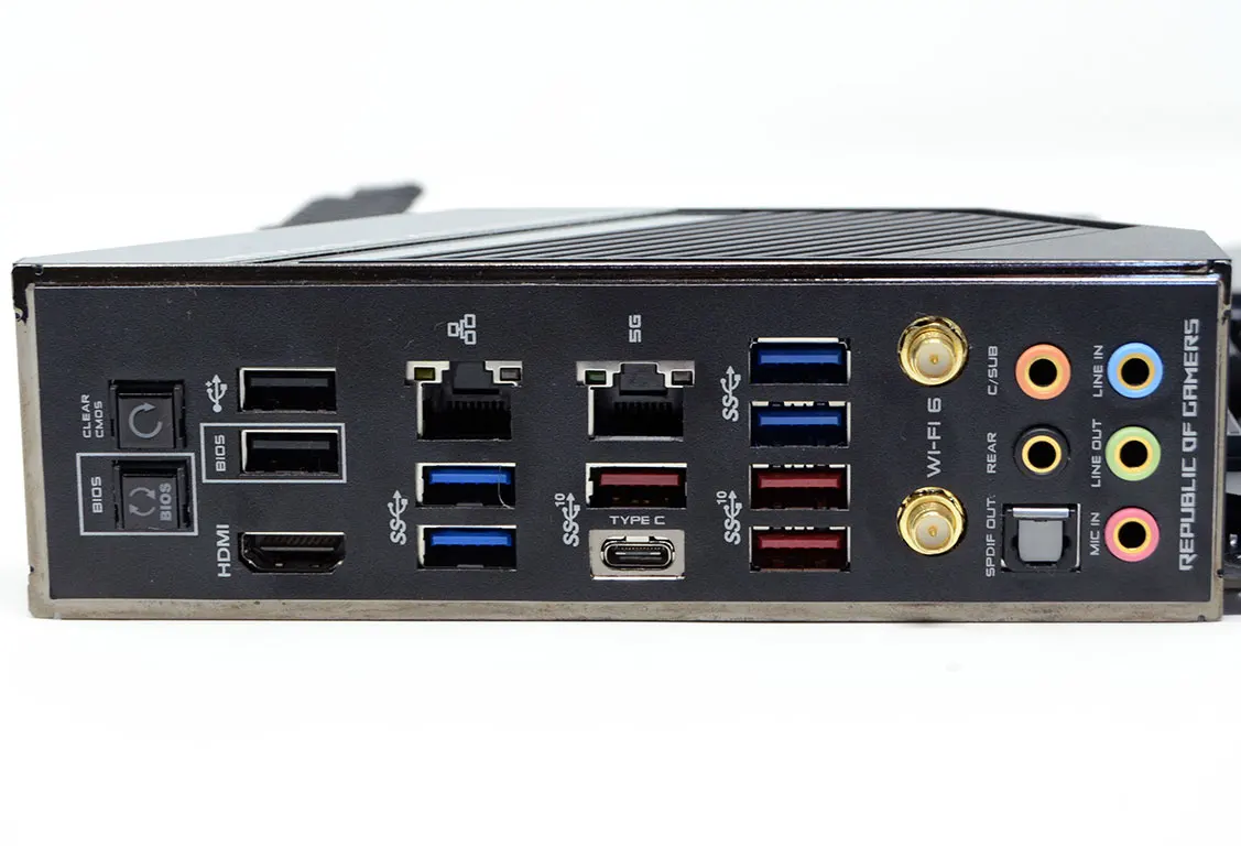 4 × puertos USB3.2 Gen2 (3 × Tipo-A, 1 × Tipo-C), 4 × puertos USB3.2 Gen1, 2 × puertos USB2.0