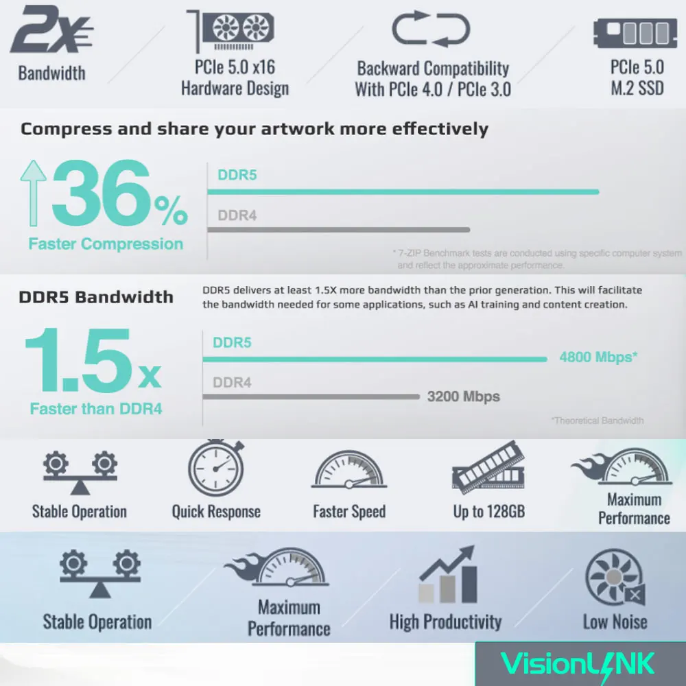 Diseño térmico avanzado y protector térmico M.2 III: para garantizar la estabilidad de potencia VRM y 25110 PCIe 5,0 M.2 SSD rendimiento