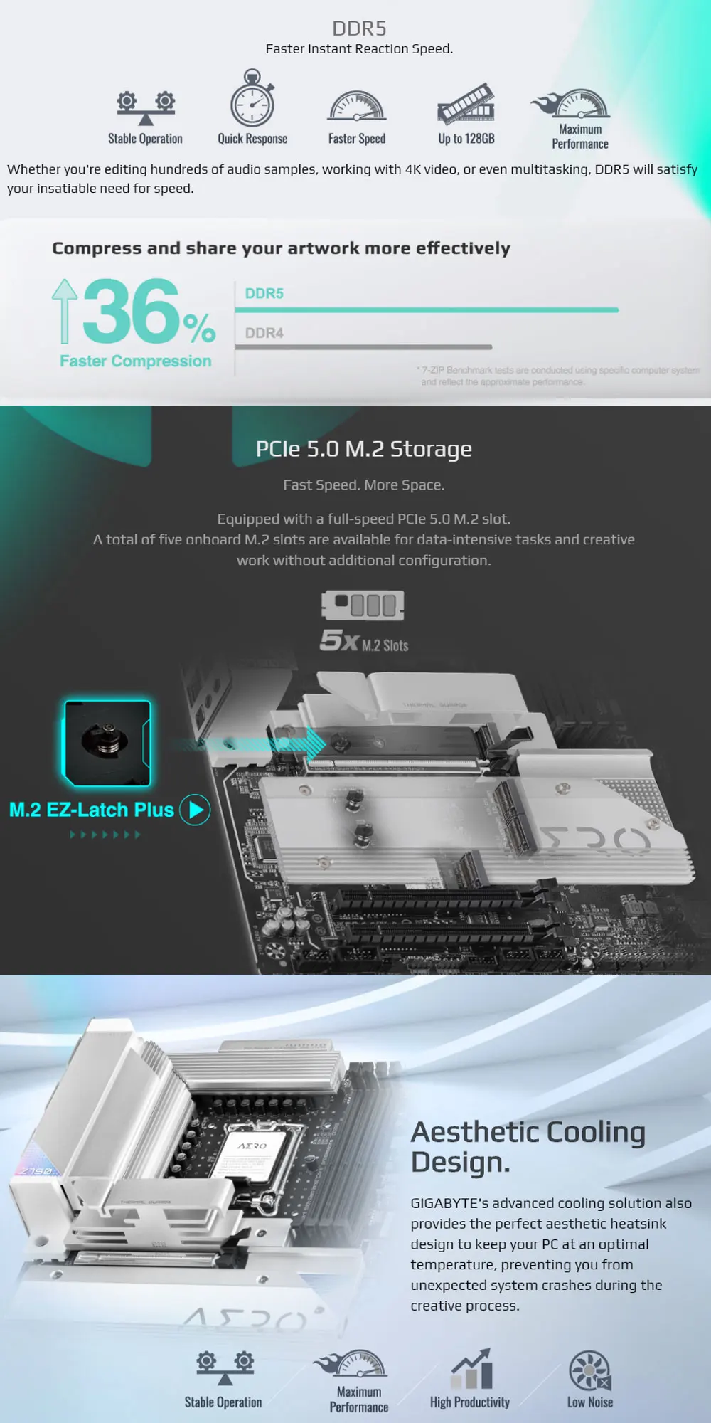 Almacenamiento de última generación: 1 * PCIe 5,0x4 y 4 * PCIe 4,0x4 M.2 conectores