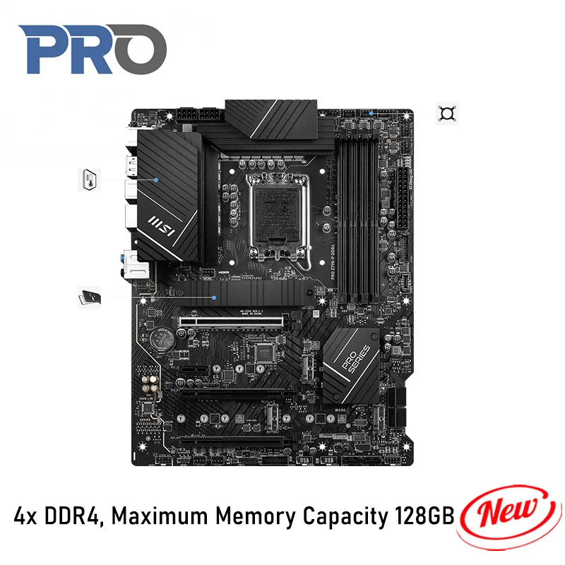 Comprar Placa base LGA 1700 Z790 MSI PRO Z790-P D4 compatible con procesadores de 12. ª generación PCIe 5,0 ATX 128GB placa base DDR4 5333 + MHz (OC)