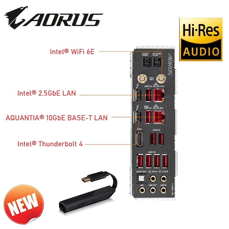 Onboard Intel® WiFi 6E 802.11ax 2T2R & BT 5 with 2X AORUS Antenna