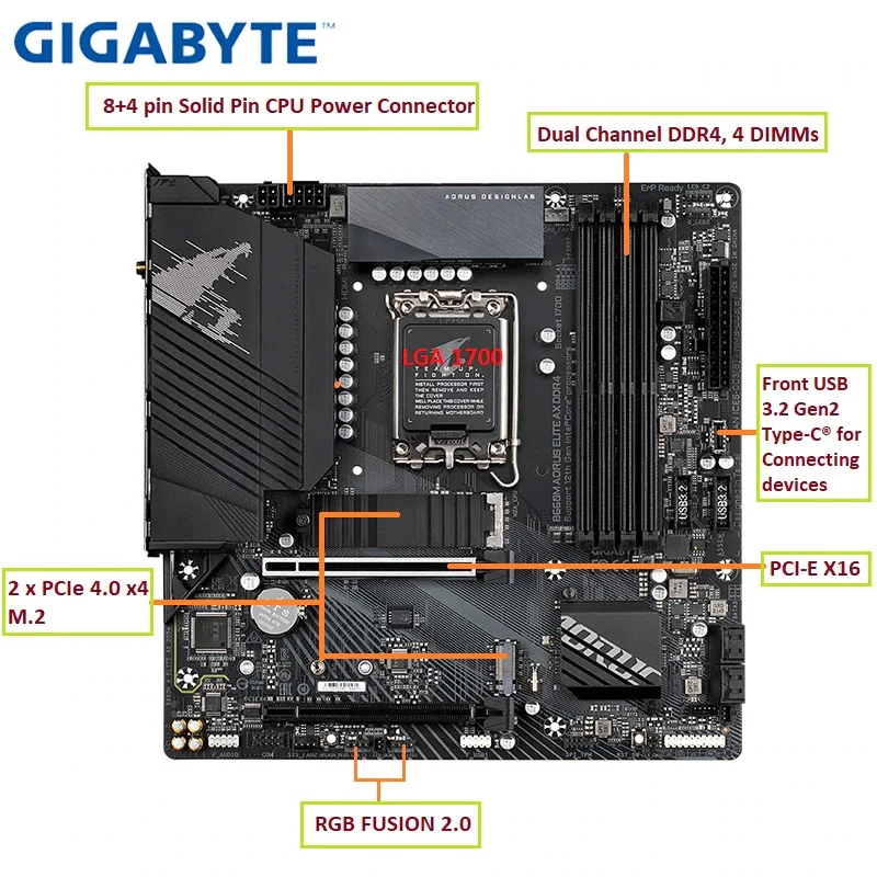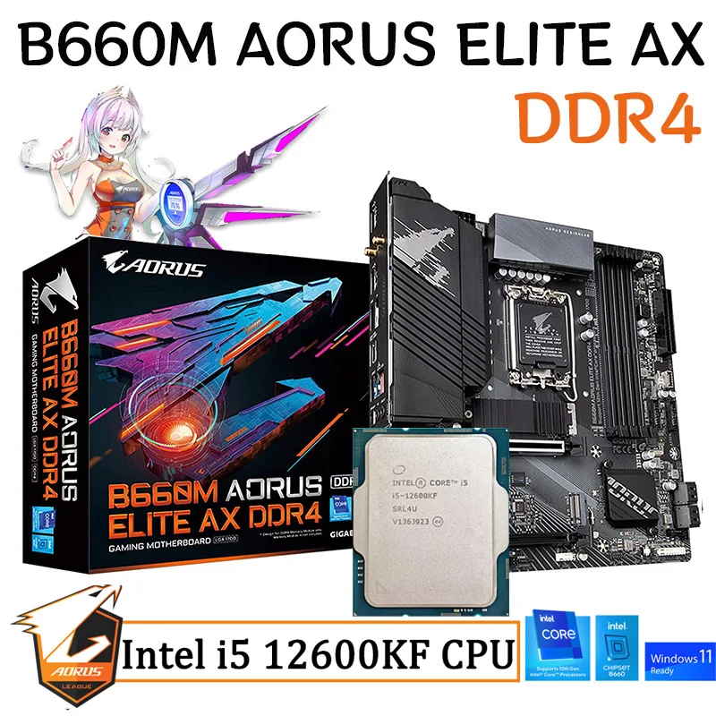 Comprar Placa base LGA1700 DDR4 Gigabyte B660M AORUS ELITE AX DDR4 con Intel core i5 12600KF CPU, Kit de placa base PCIe 4,0 Intel B660, nuevo