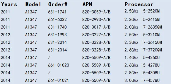 Nota: el producto es solo uno de la imagen del producto, y la apariencia de la placa base A1347 es diferente cada año. Si no está seguro del modelo original de su placa base. Contacta con nuestro servicio de atención al cliente