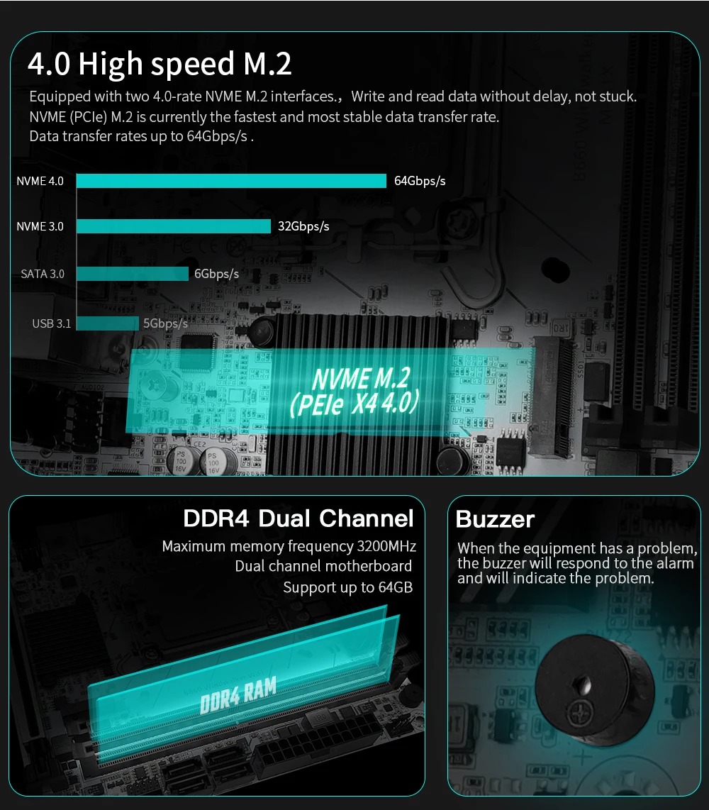 Tecnología: DDR4 de doble canal.Admite 2133/2666/3000/3200MHz.
