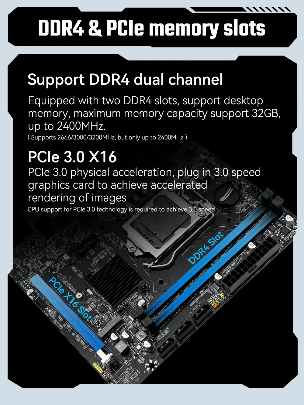 Tecnología: DDR3 de doble canal.Soporta 1333/1600/1866 MHZ.