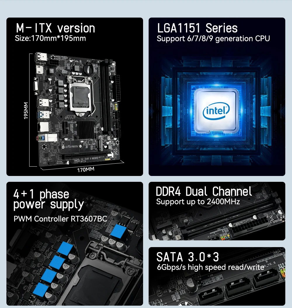 Procesador: Admite procesadores Intel de la serie LGA de 1151 pines.