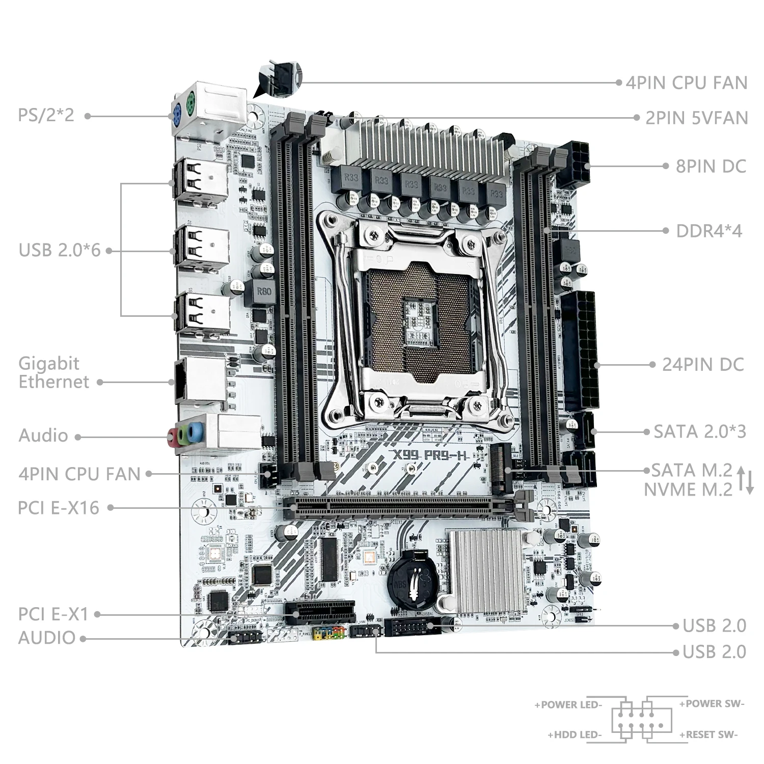 Comprar Placa base MACHINIST X99 PR9-H blanca compatible con LGA 2011-3 Intel Xeon E5 V3 y V4 CPU DDR4 RAM SATA/NVME M.2 ranura