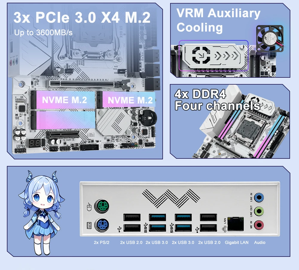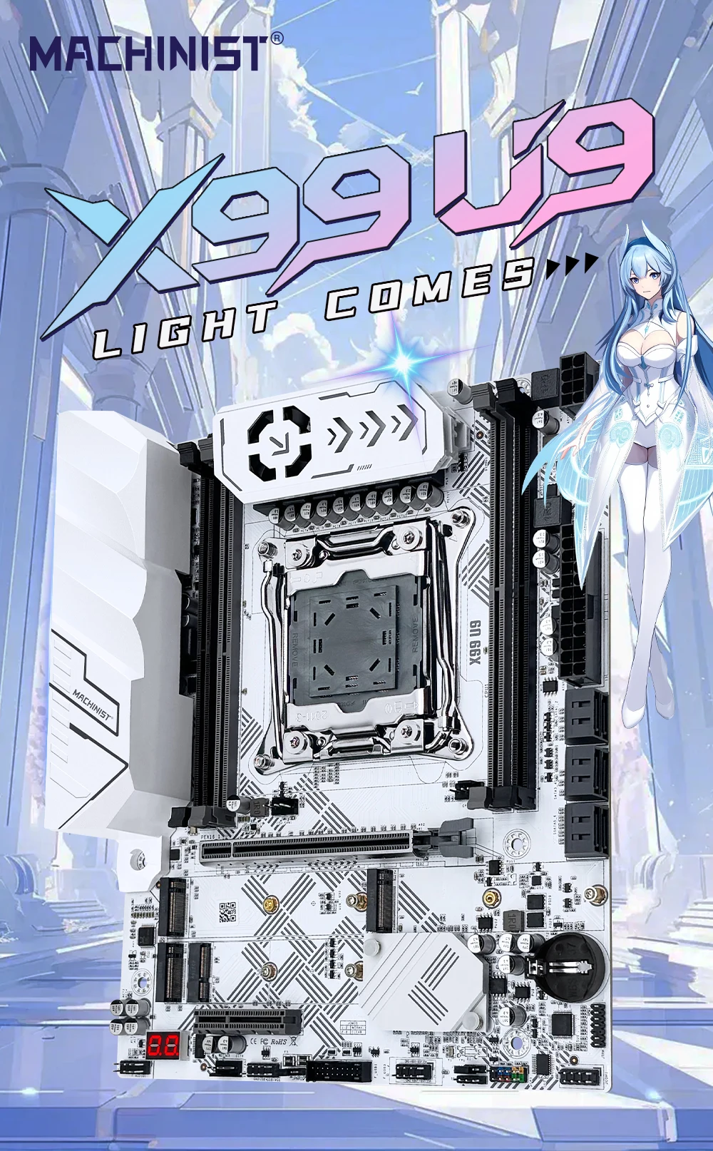 Modelo de placa base: X99 U9, blanco.