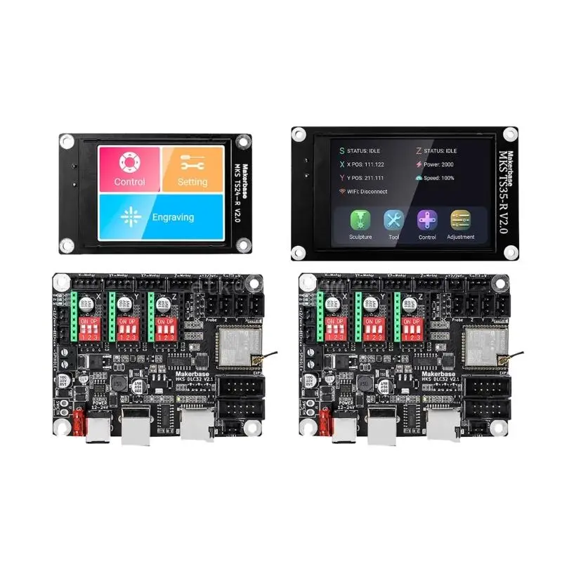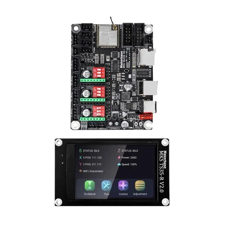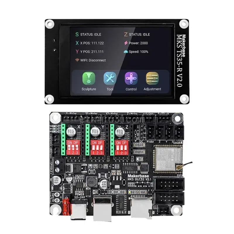 Puede lograr funciones como el tallado rápido, el control de páginas web y el control de aplicaciones móviles. Los orificios de instalación y el tamaño de la placa de circuito de DLC32 son compatibles con MKS DLC y también se pueden utilizar con el software GRBLaser y LightBurnPC.