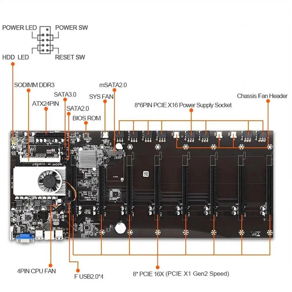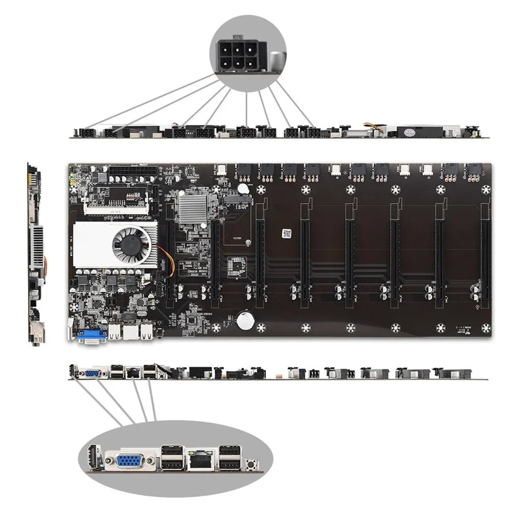 Comprar Placa base de minería 8 GPU, Placa base con CPU, Crypto, Ethereum, Bitcoin, sin Riserless, BTC 37, tablero experto de minería, Miner, red Gigabit