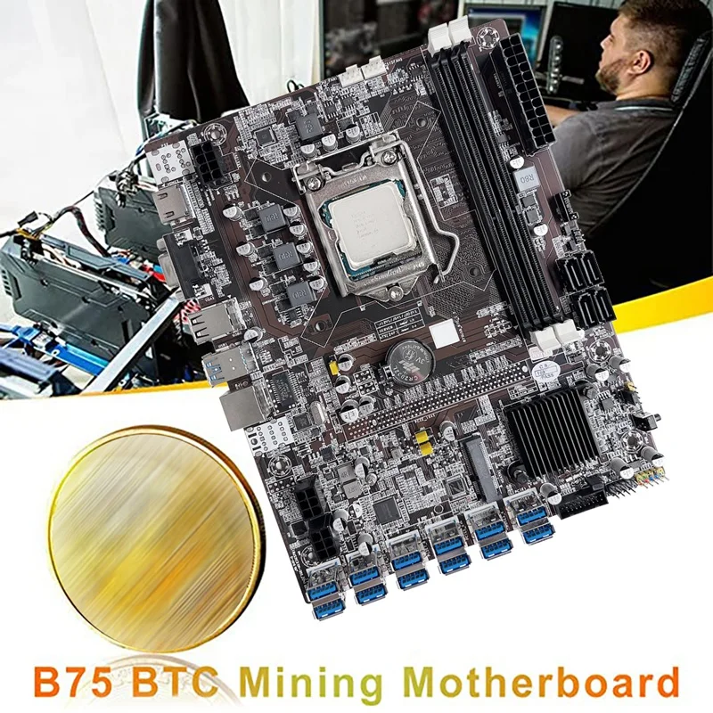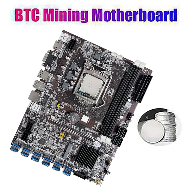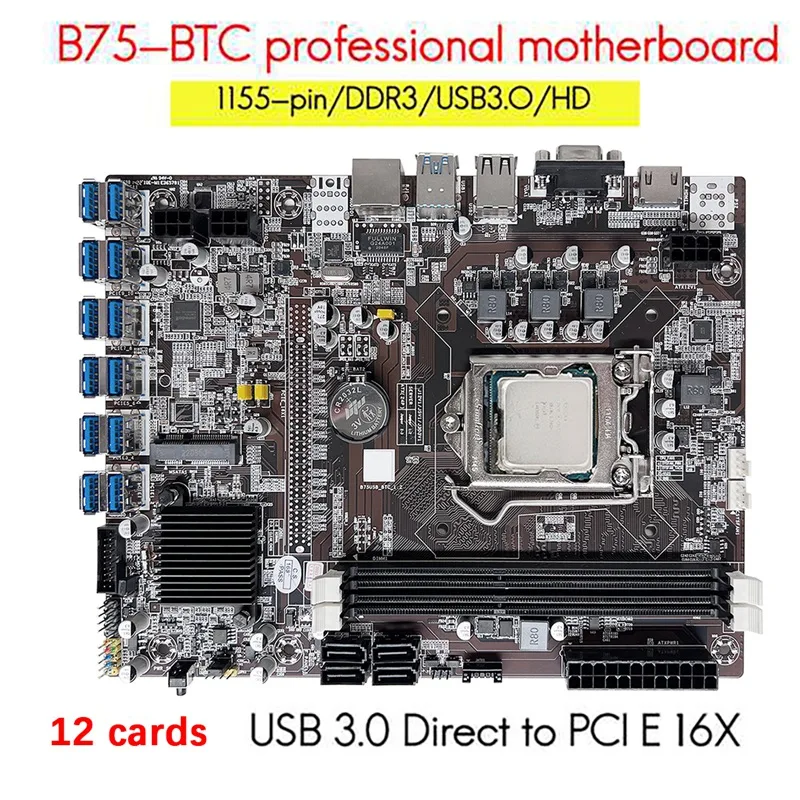 Comprar Placa base de minería B75 12, GPU BTC, CPU G1610, ventilador, almohadilla térmica, Cable de interruptor, ranura LGA1155 DDR3, RAM MSATA, novedad
