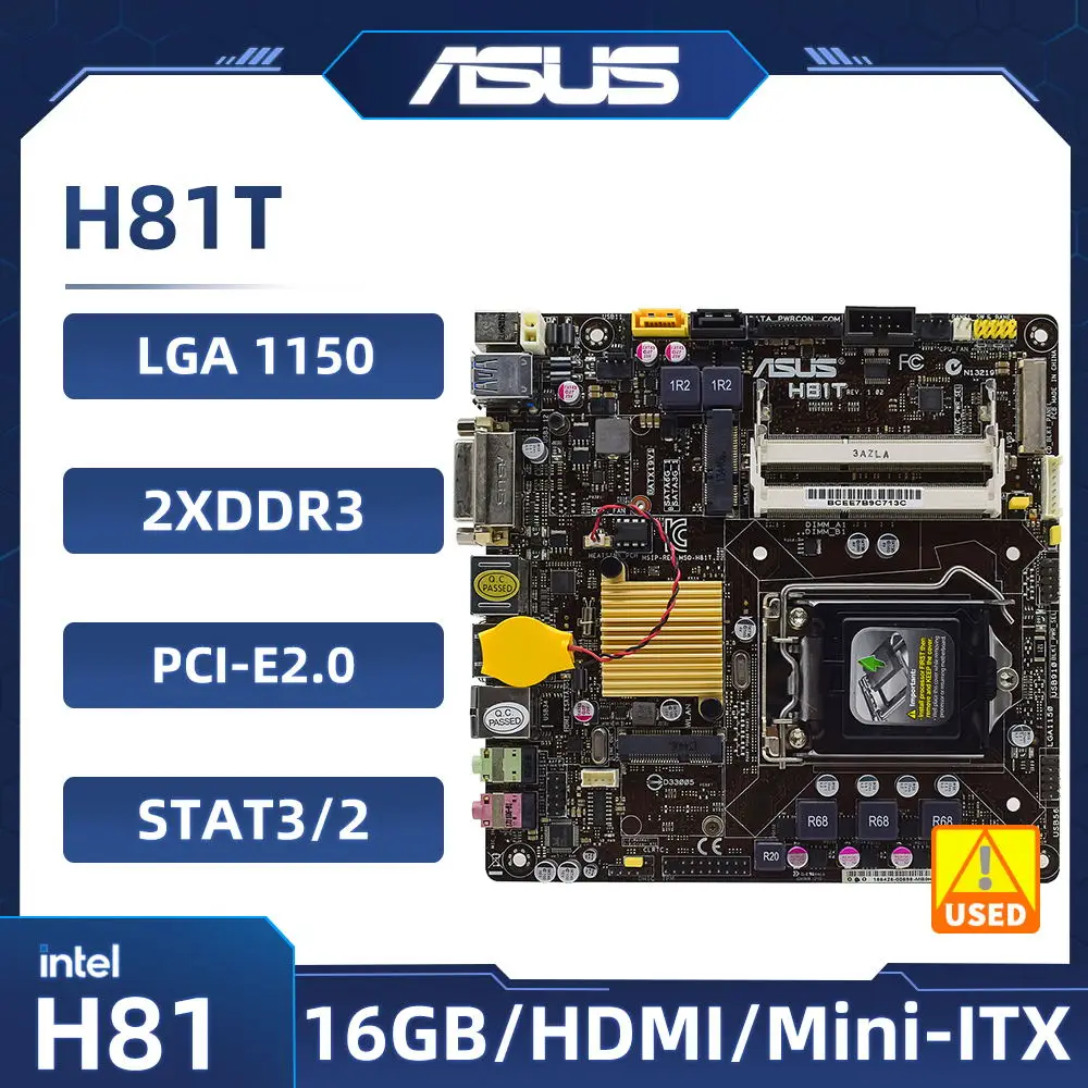 Comprar Placa base MINI ITX ASUS H81T, LGA 1150, Intel H81, 2 x DDR3, 16GB, PCI-E 2,0, USB3.0, SATA III, HDMI, para cpu Core i7/i5/i3