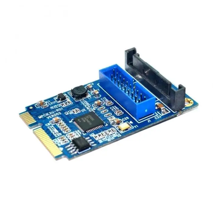 Placa base Mini PCI Express a Dual USB 3,0 Adaptador de tarjeta de expansión de 19 pines PCI-E a 2 puertos USB 3,0 Adaptador SATA XXM