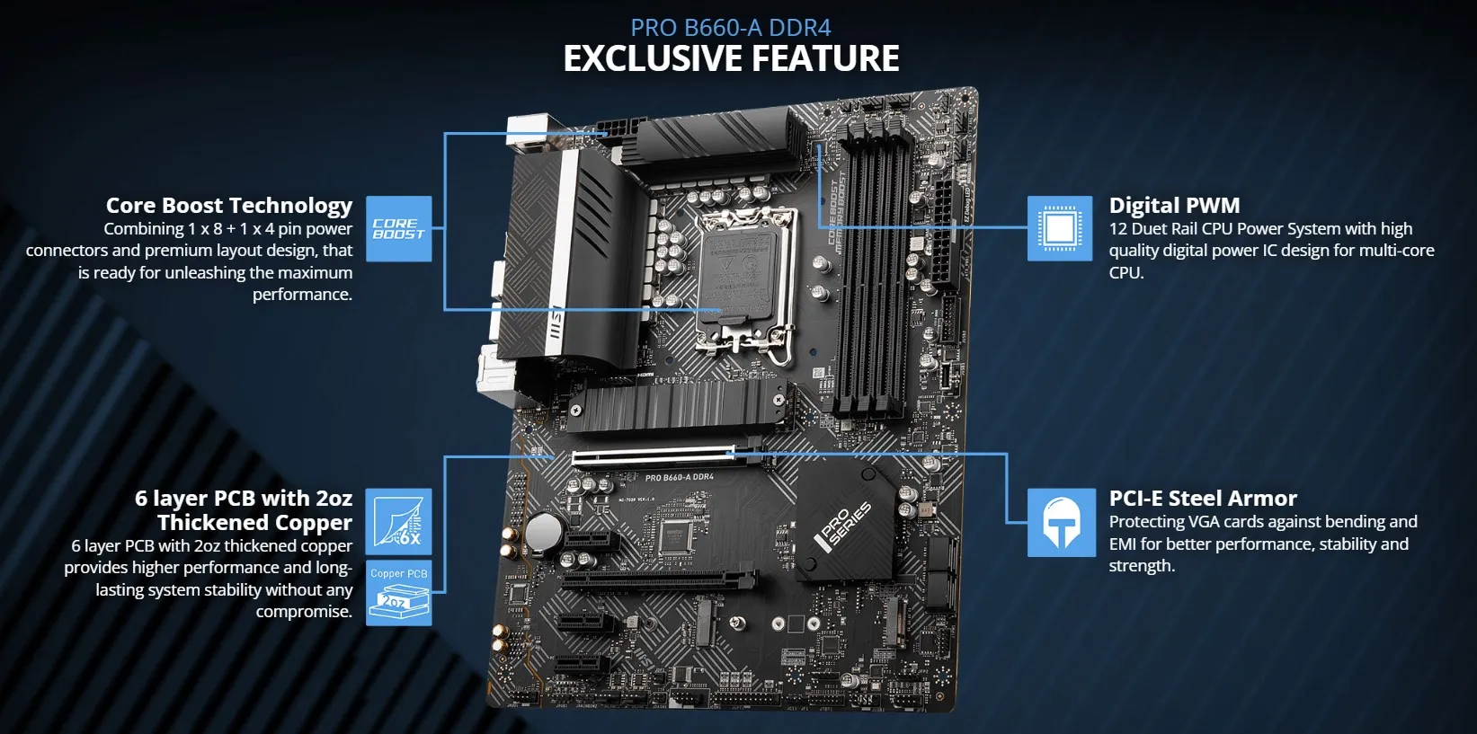 Placa base MSI PRO B660-A DDR4 compatible con i9-14900KF 13900K i7-14700K 13700 i5-14600K 13500 CPU 4xDDR4 5333MHz HDMI LAG1700 NVME M.2 PCle 4.0