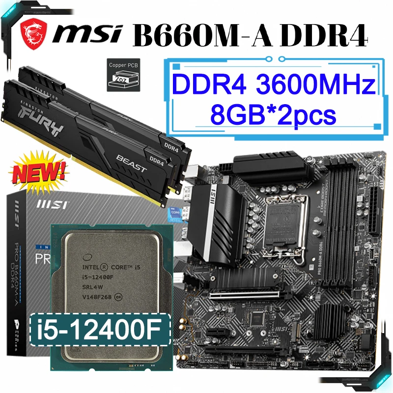 Comprar Placa base MSI PRO B660M-A DDR4 LGA 1700 + Intel Core i5 12400F CPU + D4 3600MHz 8GB * 2 piezas RAM, conjunto de placa base para juegos