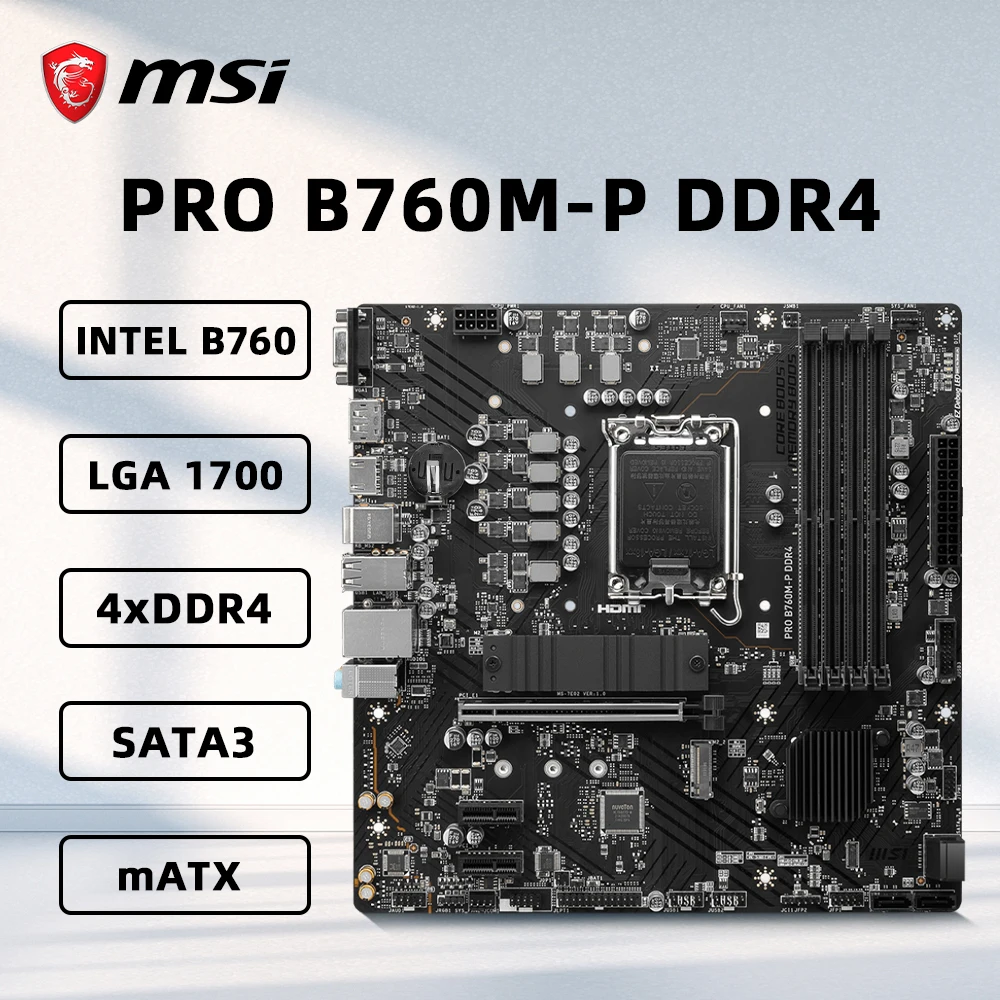 Placa base MSI PRO B760M-P DDR4 compatible con i9-14900KF i7-12700KF i5-13400 CPU DDR4 4800MHz 64GB LGA 1700 HDMI NVME M.2 PCle 4.0