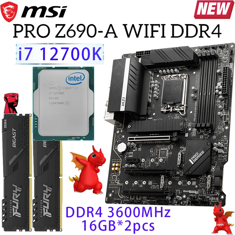 Comprar Placa base MSI PRO Z690-A WIFI DDR4 + Intel Core i7 12700K CPU + D4 3600MHz 16GB * 2 piezas LGA1700 HDMI 2,1 nueva placa base para juegos