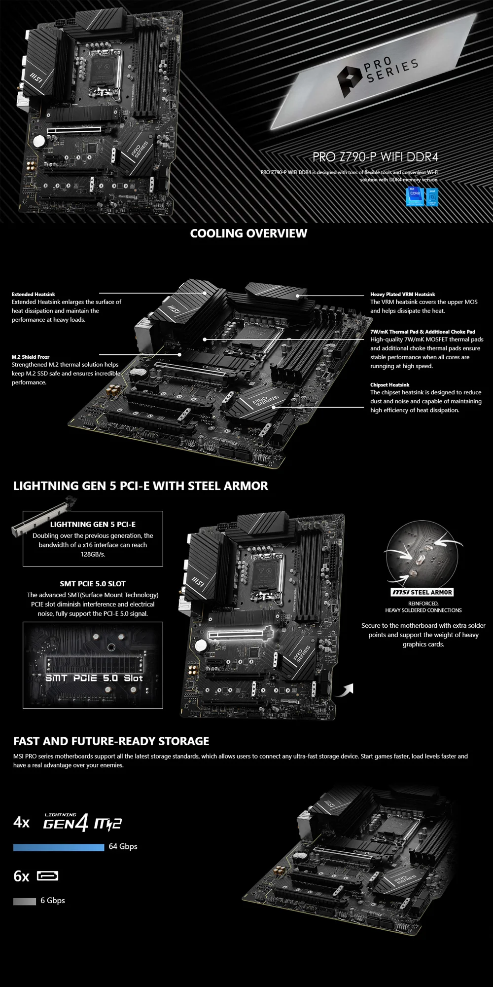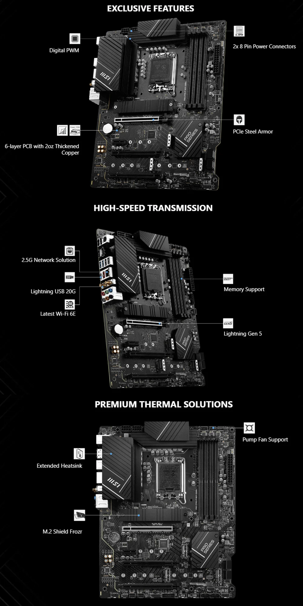 Solución térmica Premium: disipador térmico extendido, almohadillas térmicas MOSFET clasificadas para 7W/mK, almohadillas térmicas de estrangulación adicionales y M.2 Shield Frozr están fabricadas para un sistema de alto rendimiento y una experiencia de juego continua
