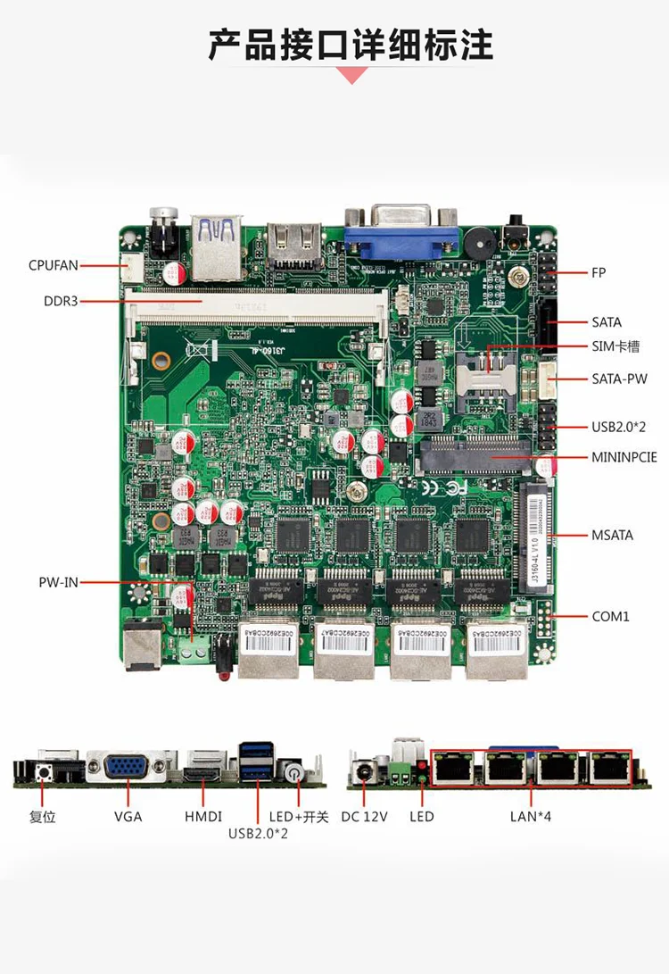 La placa base NANO mini ITX J1900 J1800/control en la pequeña placa base industrial N2940/N2840CPU 12x12