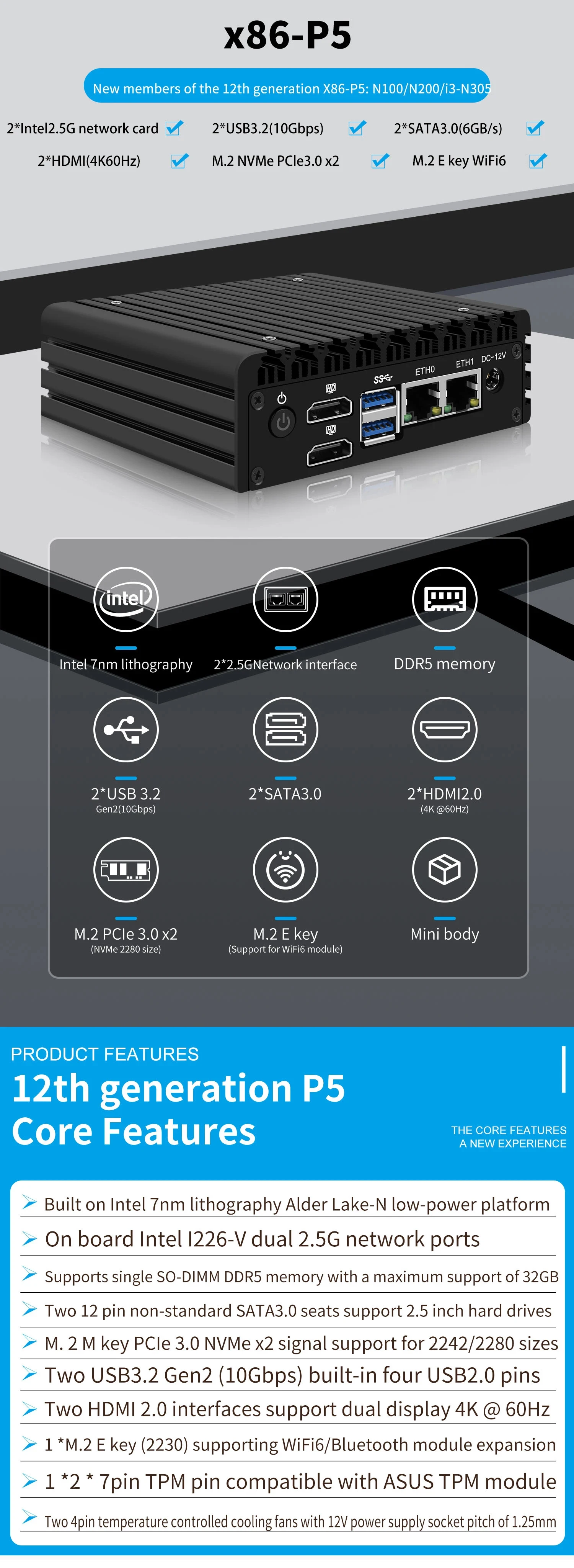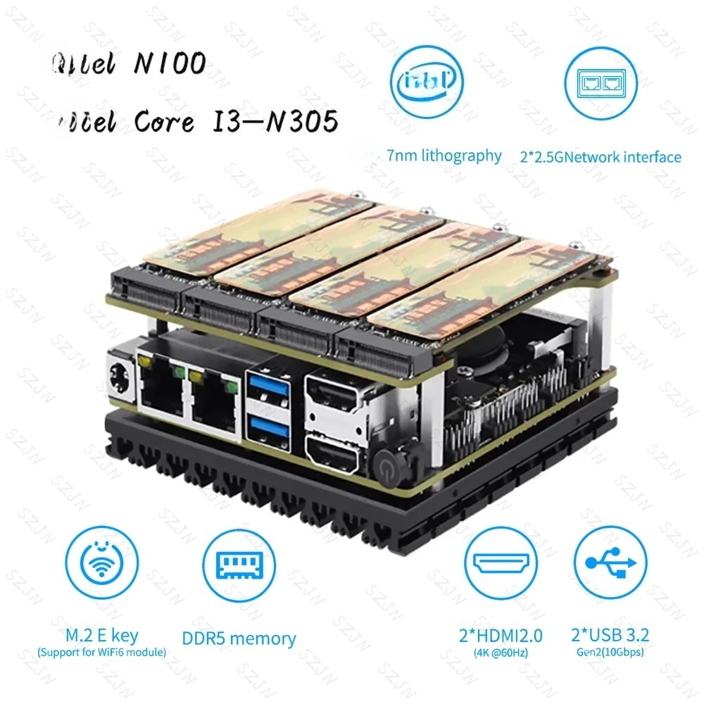 Comprar Placa base NAS de bolsillo X86-P5, placa de desarrollo 4 * M2 NVME, placa de expansión de 12. a generación N100 DDR5 2X I226-V 2,5G, tarjeta de red