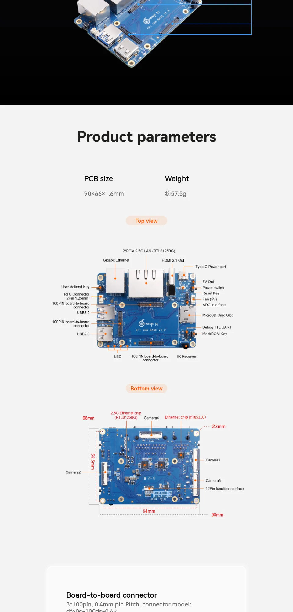 Placa Base Orange Pi CM5, ordenador de placa única Gigabit LAN de 2,5G, adecuado para módulo de cómputo OrangePi, placa central de 5