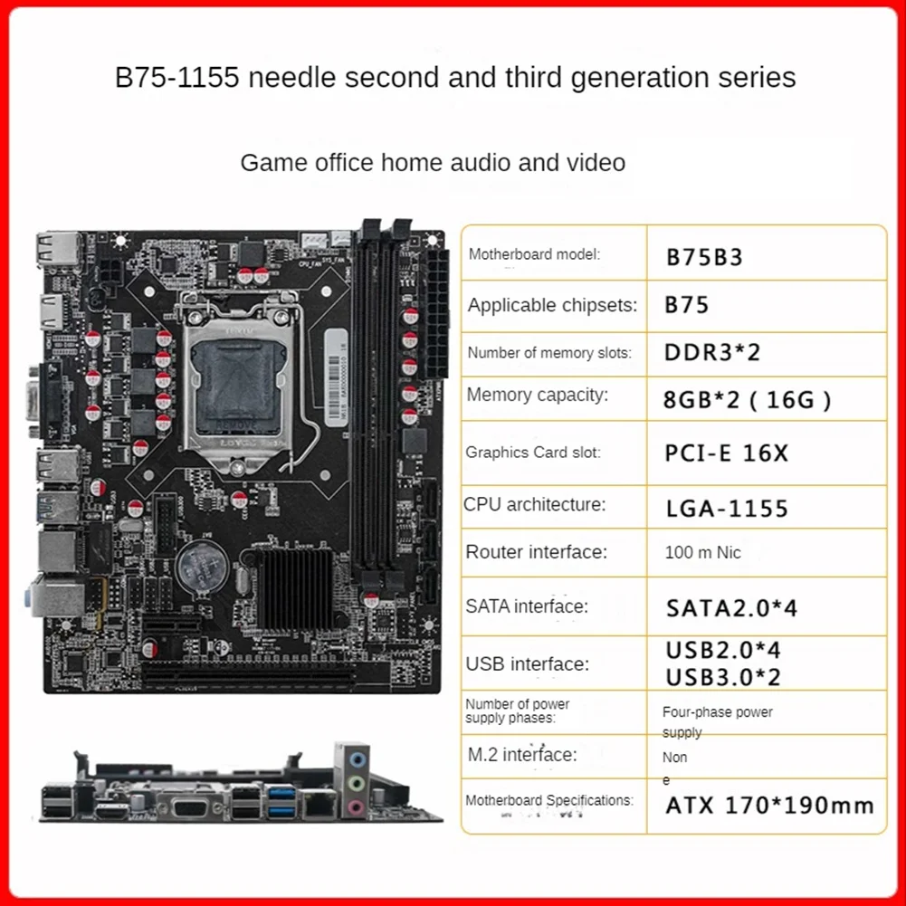 Comprar Placa base de ordenador B75 LGA1155 DDR3X2 ranura de memoria-Compatible con VGA PCI-E 16X USB3.0 SATA placa base de juego de escritorio