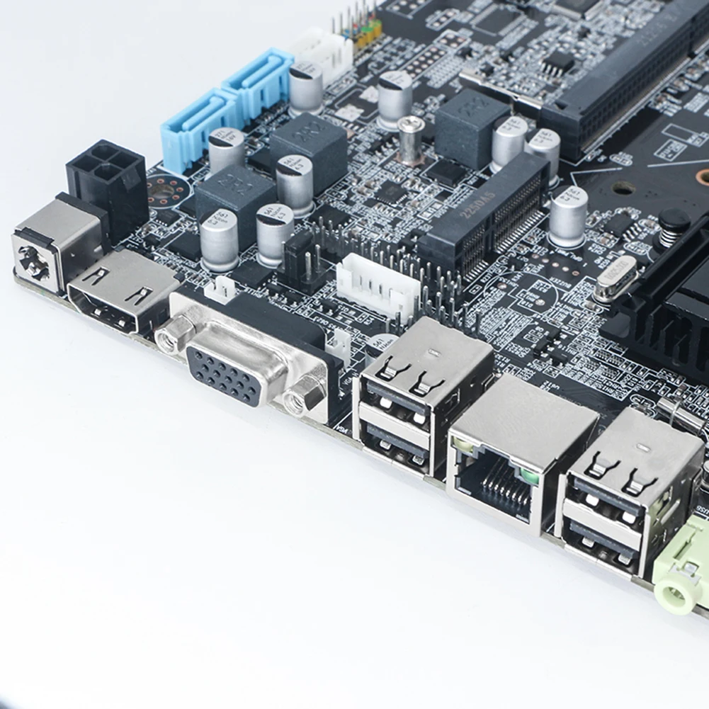 4.Interfaz de E/S rica:Esta placa base de computadora proporciona una variedad de interfaces de E/S, incluido un puerto DCIN (12 V), cuatro USB 2.0 puertos, un puerto VGA, un puerto compatible con HDMI, un puerto de red RJ45 y dos puertos de audio (salida de línea/entrada de micrófono), lo que permite a los usuarios conectar fácilmente dispositivos externos.