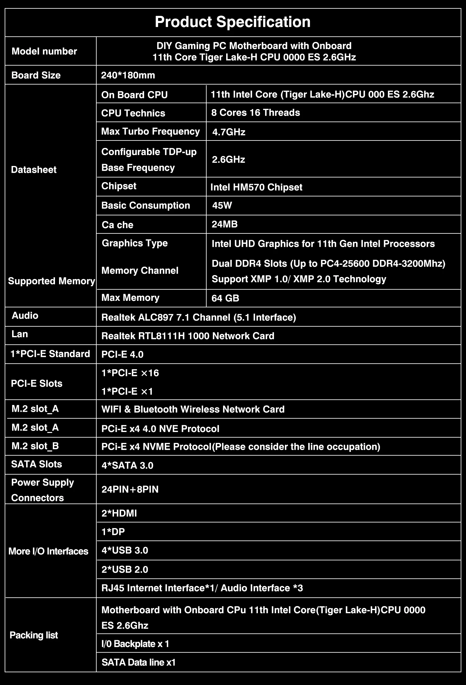 Comprar Placa base de ordenador para juegos DIY CPU Combo 11th Core 0000 ES 2,6 GHz 8C16T (referir al Kit i9 11980HK i9 11900H Procesador) DDR4 RAM