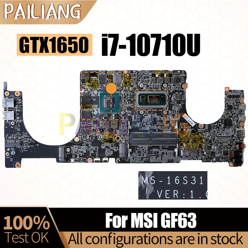 Comprar Placa base para ordenador portátil MSI GF63, MS-16S31, SRGP2, i7-10710U, GTX1650, completamente probada
