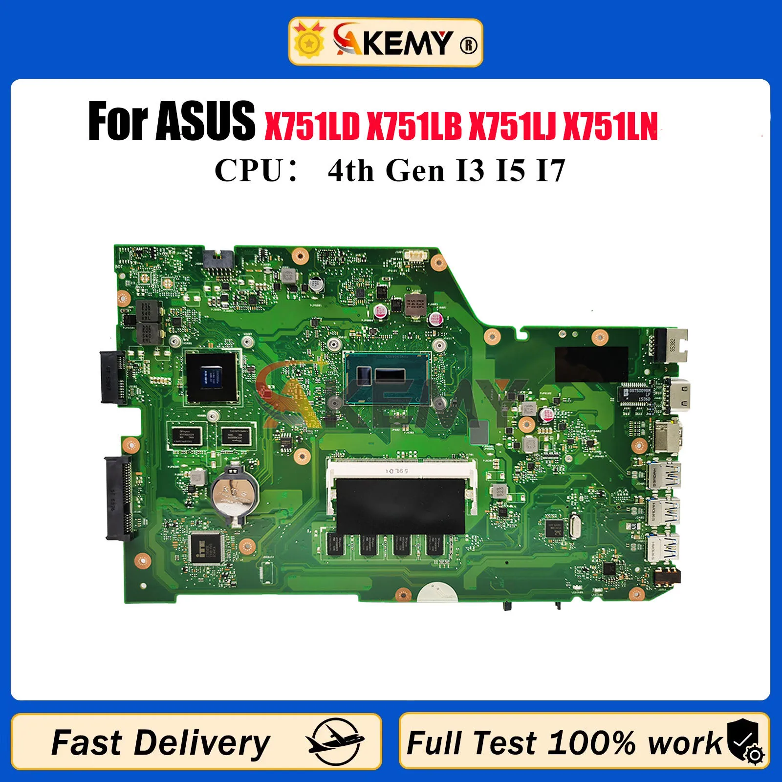 Placa base para portátil X751LD para ASUS X751L K751L A751L F751L X751LB X751LJ X751LK X751LKB X751LN X751LDV Placa base con CPU I3 I5 I7