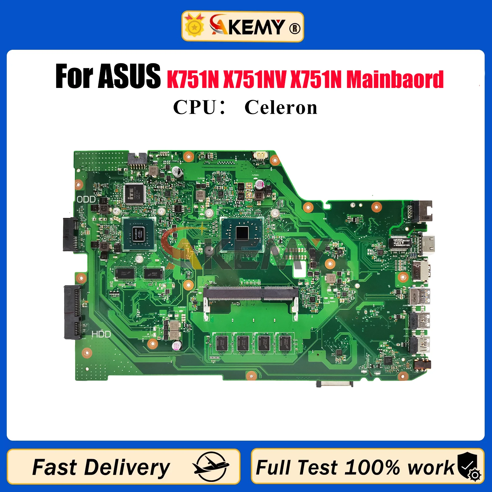 Placa base para ordenador portátil X751NV para ASUS VivoBook X751N K751N X751NV X751NC placa base para ordenador portátil con pruebas de CPU Celeron OK envío rápido